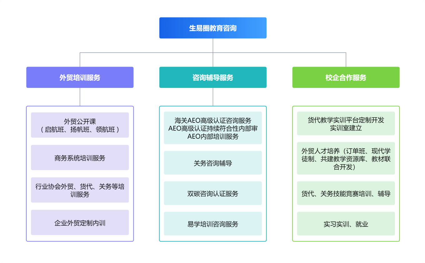 公司結合國際供應鏈外貿(mào)綜合服務及人才優(yōu)勢,立足外向型企業(yè)人才需求,成立湖南生易圈教育咨詢有限公司。